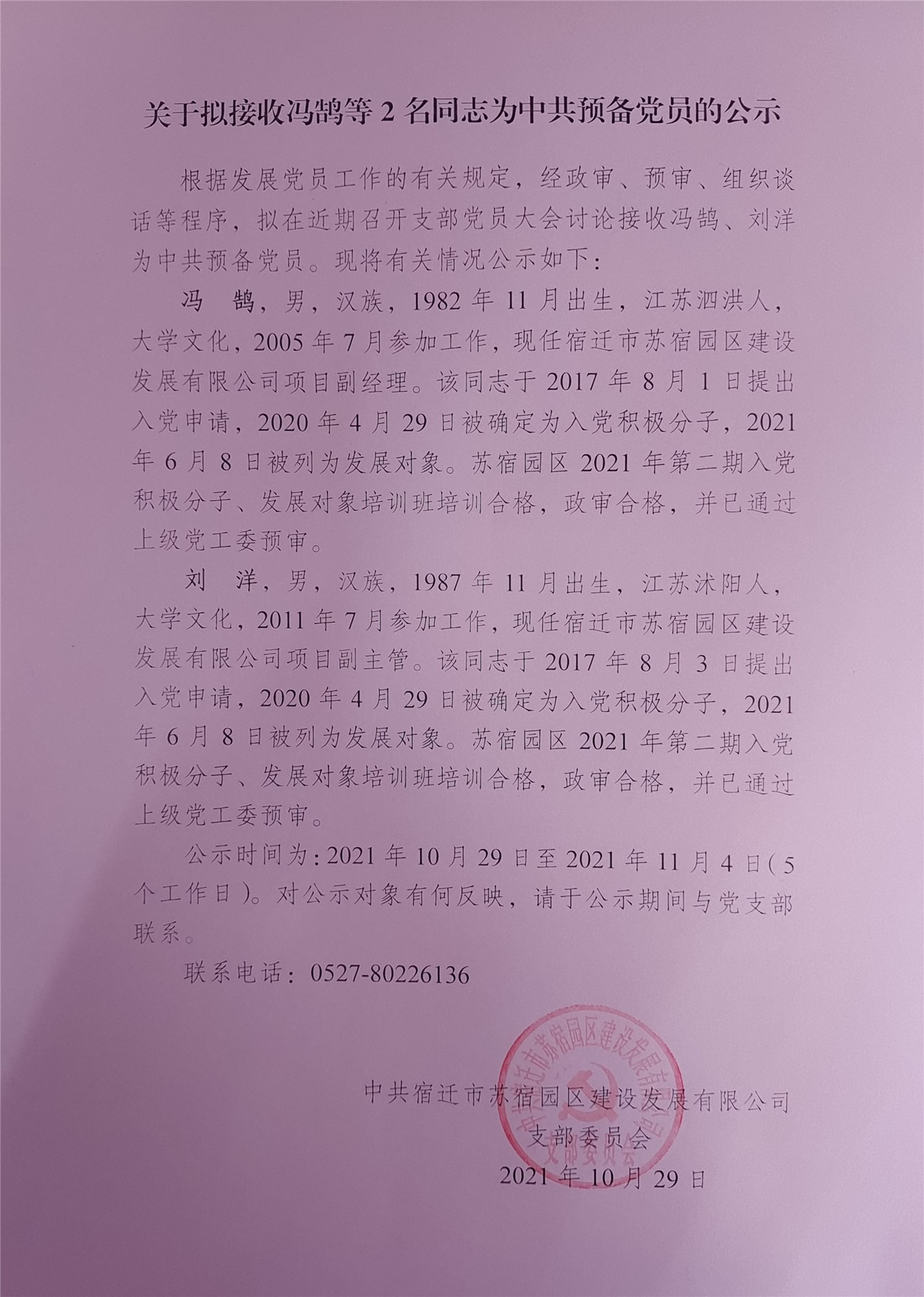 關(guān)于擬接收馮鵠等2名同志為中共預(yù)備黨員的公示