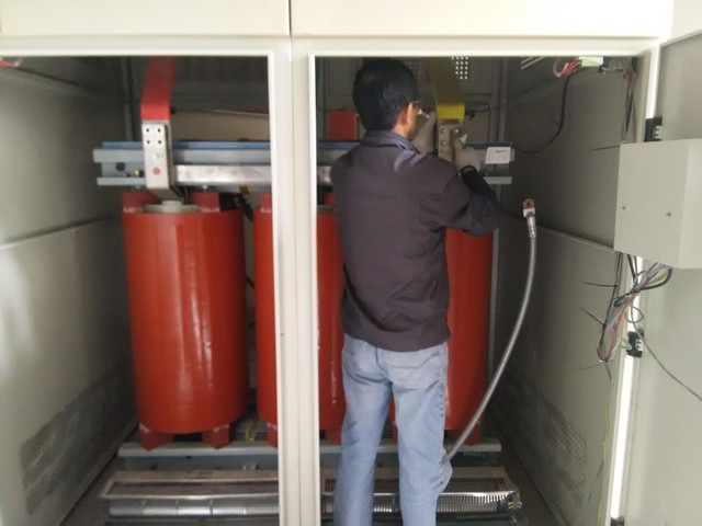 5月10日,市供電公司專業(yè)人員及物業(yè)管理部高低壓電工準時到場,有序地對6臺變壓器及17面高壓進線柜、29面低壓柜、電容補償柜等設備進行了交流耐壓試驗、直流耐壓試驗、直流電阻試驗、變比試驗、回路電阻試驗、開關測試試驗、介質損耗角試驗、絕緣試驗及接地電阻等試驗,并對柜內所有接線端子、螺栓、儀器儀表、繼電器等部件進行了清潔、檢測和調試。