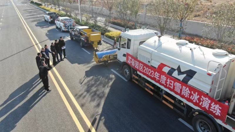 為切實(shí)做好今年冬季的掃雪除冰工作,提升應(yīng)急處置能力,11月24日下午,建發(fā)公司組織開(kāi)展除雪除冰應(yīng)急演練。宿遷市交警二大隊(duì)副大隊(duì)長(zhǎng)肖巖松、園區(qū)城維處處長(zhǎng)孫建、建發(fā)公司副總經(jīng)理倪松參加演練活動(dòng)。