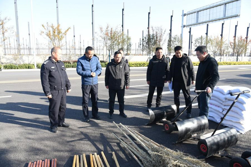 演練前,肖隊(duì)長(zhǎng)一行還檢查了掃雪除冰物資儲(chǔ)備情況。