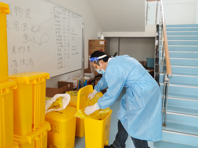 19年過(guò)去了,我也穿上防護(hù)服,面對(duì)新冠肺炎疫情,成了一名抗“疫”戰(zhàn)士?,F(xiàn)在我們是父女更是戰(zhàn)友。從3月29日開始,我們就戰(zhàn)斗在各自的區(qū)域,爸爸在園區(qū)公舍負(fù)責(zé)采樣點(diǎn)秩序維護(hù)和后勤保障,我負(fù)責(zé)對(duì)小區(qū)內(nèi)人員核酸采樣。