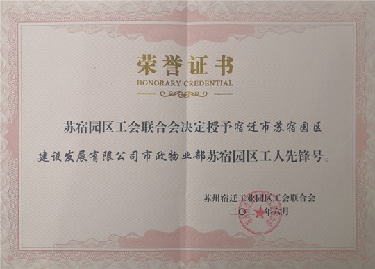 近日,建發(fā)公司市政物業(yè)部被蘇宿園區(qū)工會(huì)聯(lián)合會(huì)授予“蘇宿園區(qū)工人先鋒號(hào)”榮譽(yù)稱號(hào)。