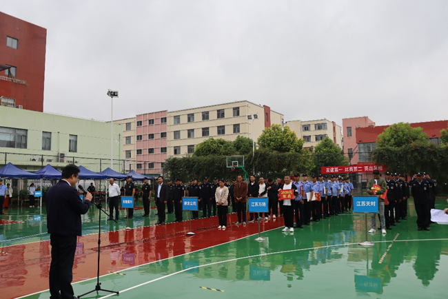 本次技能競(jìng)賽科目分別是隊(duì)列展演、消防兩盤水帶連接、消防快速滅火操。隨著比賽“開始”口令的下達(dá),四支隊(duì)伍共70名參賽隊(duì)員身著保安制服,以飽滿的精神、高昂的氣勢(shì)、整齊的步伐以及響亮的口號(hào)震撼亮相。稍息、立正、敬禮與禮畢、正步走、齊步走……他們用整齊劃一的動(dòng)作、干凈利落的操作表演、扎實(shí)的軍事素養(yǎng),贏得了現(xiàn)場(chǎng)觀眾和評(píng)委的高度贊揚(yáng)和肯定!最終江蘇萬楊保安服務(wù)有限公司和江蘇天時(shí)物業(yè)管理有限公司獲評(píng)團(tuán)體第一名和第二名。