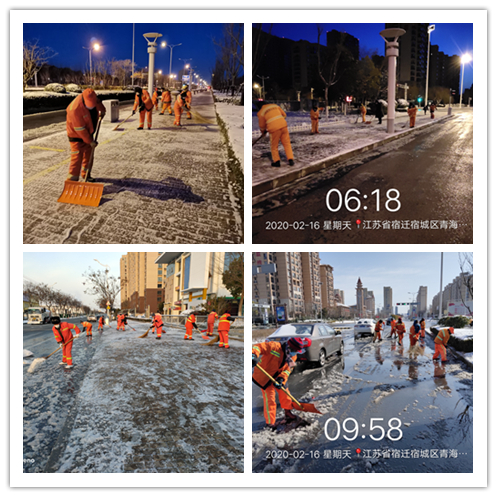 2月15日,宿遷市普降中雪,加上氣溫驟降,道路積雪結(jié)冰較為嚴重,給新冠病毒疫情防控帶來了諸多不便。為第一時間清除冰雪,恢復道路通行,園區(qū)城管局、建發(fā)公司提前部署、以雪為令,要求環(huán)衛(wèi)作業(yè)單位在做好疫情防控的同時,全力開展掃雪除冰工作,力保雪后道路暢通。