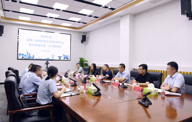 8月4日下午,蘇州工業(yè)園區(qū)機(jī)關(guān)事務(wù)管理中心陳若峰副主任一行到建發(fā)公司調(diào)研。園區(qū)黨工委委員、管委會(huì)副主任張漢華出席座談會(huì),城發(fā)公司、建發(fā)公司管理層陪同調(diào)研、座談。