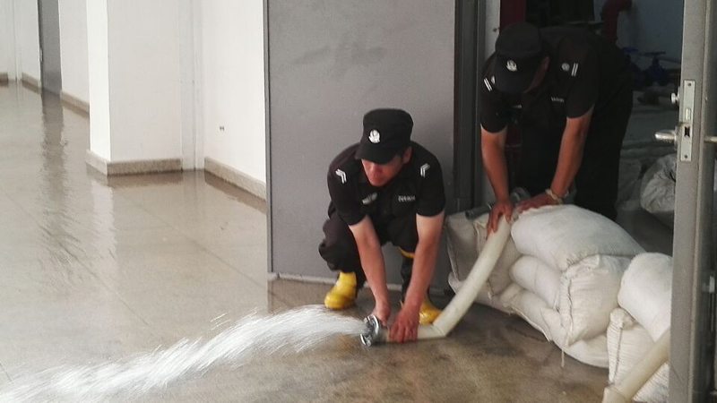 本次演練主要結(jié)合項(xiàng)目實(shí)際情況,在突發(fā)暴雨災(zāi)害發(fā)生時(shí),重點(diǎn)針對(duì)校園設(shè)備機(jī)房等重點(diǎn)區(qū)域,設(shè)置警戒,快速疏散現(xiàn)場人員及車輛,作利用防汛工具緊急排險(xiǎn),有效排除現(xiàn)場積水。