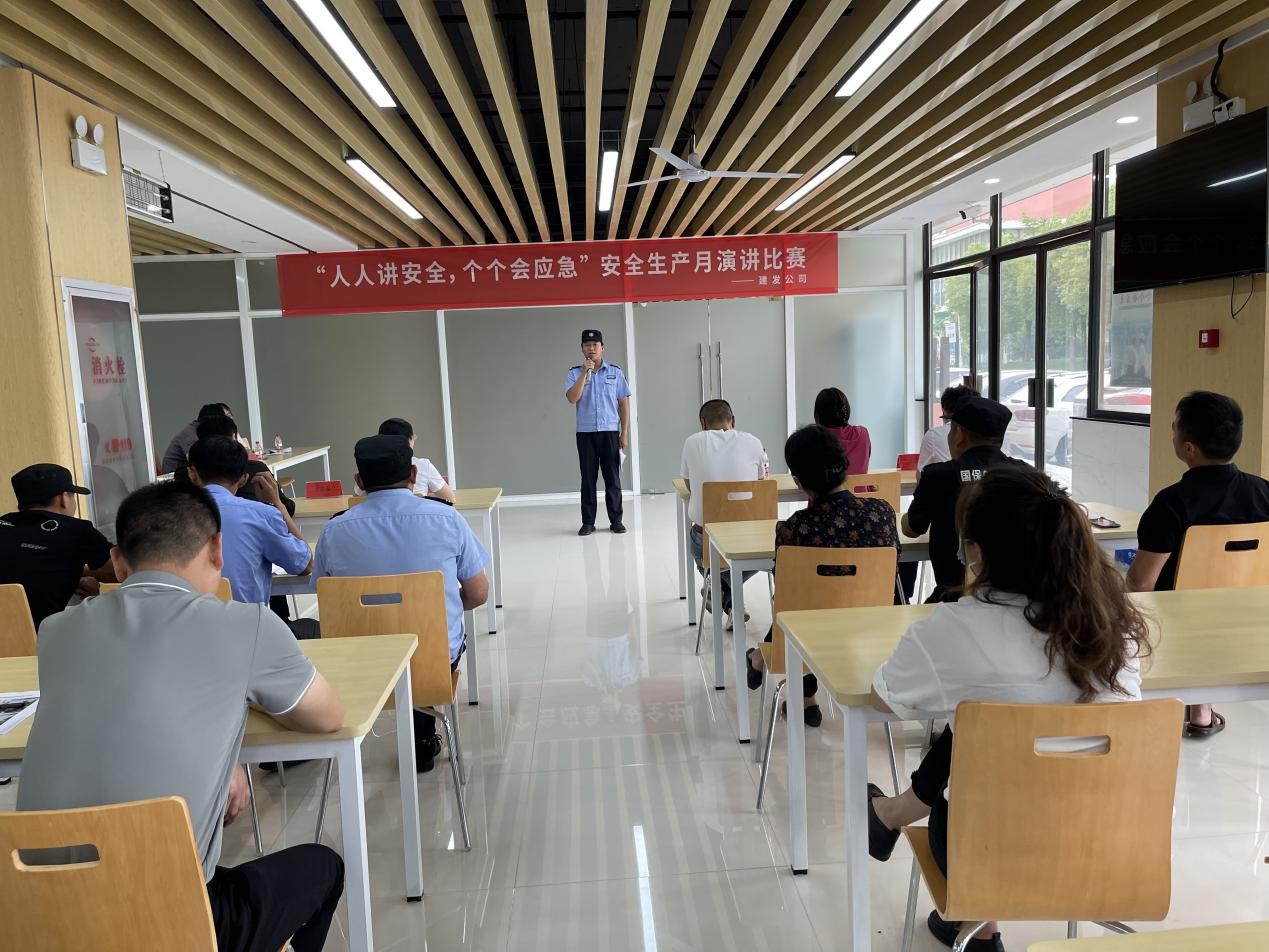 今年6月是第22個全國“安全生產月”,為進一步推動安全文化建設,提高廣大員工安全意識,營造安全和諧的生產環(huán)境和安全文化氛圍,6月16日,建發(fā)公司組織安保單位開展了“人人講安全,個個會應急”主題演講比賽。