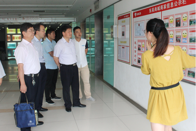 于堅強一行先后參觀了東吳尚城美食城和園區(qū)公舍餐廳,聽取了園區(qū)小餐飲集中區(qū)建設(shè)背景和運營狀況的介紹,并先后觀看了園區(qū)運用移動終端、二維碼等技術(shù)手段推動明廚亮灶、遠程監(jiān)管、社會共治的現(xiàn)場演示??疾熘校谔庨L對園區(qū)積極創(chuàng)新監(jiān)管手段,推動社會共治,將小餐飲管理出高標準給予了充分肯定,他要求建發(fā)公司要進一步創(chuàng)新監(jiān)管思路,加大食品管理力度,確保食品衛(wèi)生安全零事故。