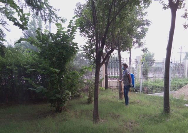 立秋以來天氣晴朗少雨,物業(yè)管理部按照?qǐng)@區(qū)公舍綠化養(yǎng)護(hù)計(jì)劃積極開展病蟲害防治工作,組織養(yǎng)護(hù)人員在人員流動(dòng)性較少的時(shí)間段對(duì)園區(qū)公舍的花灌木、球類、綠籬等噴灑氧化樂果、阿維高氯等園林農(nóng)藥,共用30瓶農(nóng)藥,有效控制了園區(qū)公舍綠化病蟲害的發(fā)生。