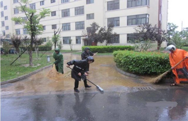 雨天沖洗道路,雖比平日工作更為辛苦,但效果好且節(jié)水環(huán)保,物業(yè)管理部充分利用天然的水資源,借助雨水沖力,清潔人行道、溝槽積垢,以及清理路面口香糖、油污等污垢,從而達(dá)到事半功倍的效果,同時(shí)雨天清潔對(duì)交通影響較小,集中清潔在一定程度上不會(huì)對(duì)市民的出行造成太大影響。