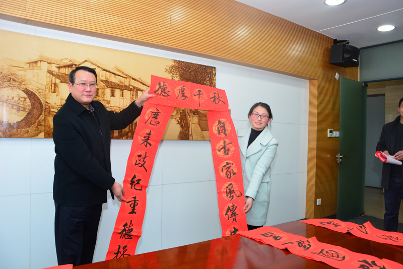 “勤儉持家家興旺,清廉愛國(guó)國(guó)運(yùn)昌”“辭舊迎新山清水秀景色美,繼往開來(lái)全民尚廉風(fēng)氣新”……為進(jìn)一步加強(qiáng)春節(jié)前后反腐倡廉宣傳教育,營(yíng)造濃厚的節(jié)日倡廉氛圍,在農(nóng)歷酉雞年即將來(lái)臨之際,園區(qū)組織黨員干部和社區(qū)居民書法愛好者開展寫廉政春聯(lián)活動(dòng)。副市長(zhǎng)、園區(qū)黨工委、管委會(huì)主任方文浜等工委領(lǐng)導(dǎo)親自為園區(qū)干部群眾送上新春廉聯(lián)。